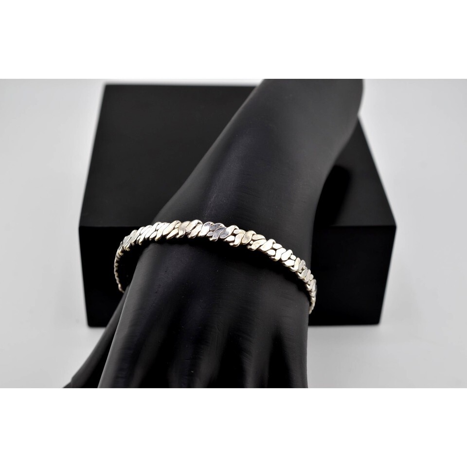 A GIFT BOX AND BAG WILL BE INCLUDED WITH EVERY ITEM PURCHASED DURING THE HOLIDAY SEASON.A beautiful vintage bracelet measuring approx. 8.5 inches and 0.25" wide. Unmarked and tested positive for sterling silver. Weighs 17.2g. Due to its age, it may be slightly tarnished. A beautiful example to add to your collection.