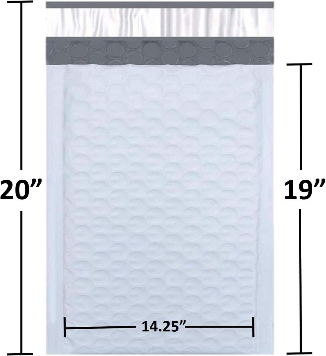 (1) NEW PACK OF 10 count 14" wide x 19" tall WHITE color POLY BUBBLE MAILERS TRADE SIZE #7 WITH PEEL STICK ADHESIVE FLAP. TEN (10) BRAND NEW BIG BUBBLE ENVELOPES WITH INNER DIMENSIONS 14" wide x 19" tall (outer dimensions including flap 14 1/4" x 20"). TRADE SIZE #7. FEATHERWEIGHT DESIGN POLY BUBBLE ENVELOPES ARE THE FAST AND EASY WAY TO SHIP, JUST 1 ounce PER BUBBLE ENVELOPE, SAVE MONEY ON POSTAGE. THESE ARE PERFECT FOR SHIPPING LARGER ITEMS THAT REQUIRE A VERrrrrY LARGE BUBBLE ENVELOPE. LOTS OF INTERIOR ROOM IN THIS WHITE POLY BUBBLE ENVELOPE WITH ROBUST 1/8" TALL INTERIOR BUBBLES, THESE BUBBLE ENVELOPES PROTECT CONTENTS AGAINST THE ELEMENTS AND ARE PERFECT FOR ONLINE eCOMMERCE SELLERS. YOU WILL RECEIVE 10 NEW 14" x 19" WHITE BUBBLE ENVELOPES WITH PEEL AND STICK ADHESIVE FLAP SHIPPED BY USPS.....