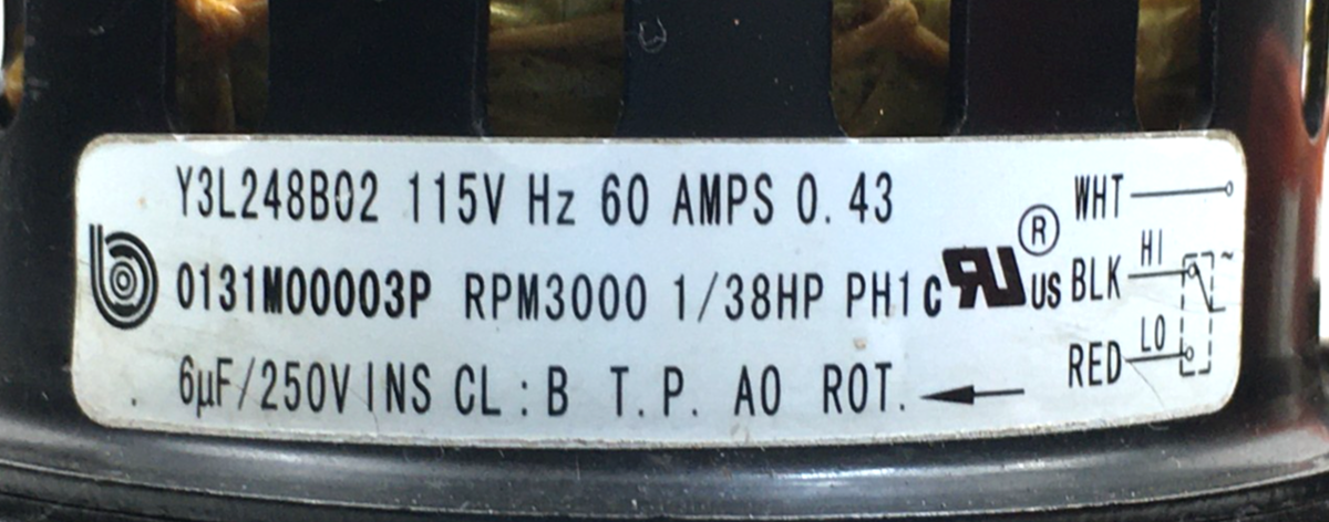 This is Goodman Amana Y3L248B02 Furnace Draft Inducer Motor 0131M00003P 115V 3000 RPM 1/38HP used part.