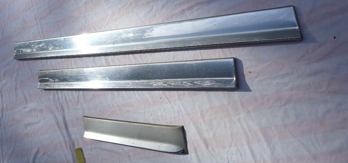 1974 FOUR DOOR CADILLAC FLEETWOOD BROUGHAM LEFT SIDE STAINLESS STEEL LOWER DOOR MOLDING TRIM. INCLUDES TRIM FOR FRONT AND REAR LEFT SIDE ( DRIVER SIDE ) DOORS AND LEFT SIDE FRONT FENDER. INCLUDES SOME OF THE MOUNTING CLIPS AS WELL. TRIM IS IN GOOD SHAPE OTHER THAN A FEW SMALL DINGS/DENTS/SCRATCHES. MAY FIT OTHER MAKES AND MODELS AS WELL. Sold as is !!!!!! Items I sell May have minor scratches / scuffs / dings / dents / cracks / rust or paint loss !!!!