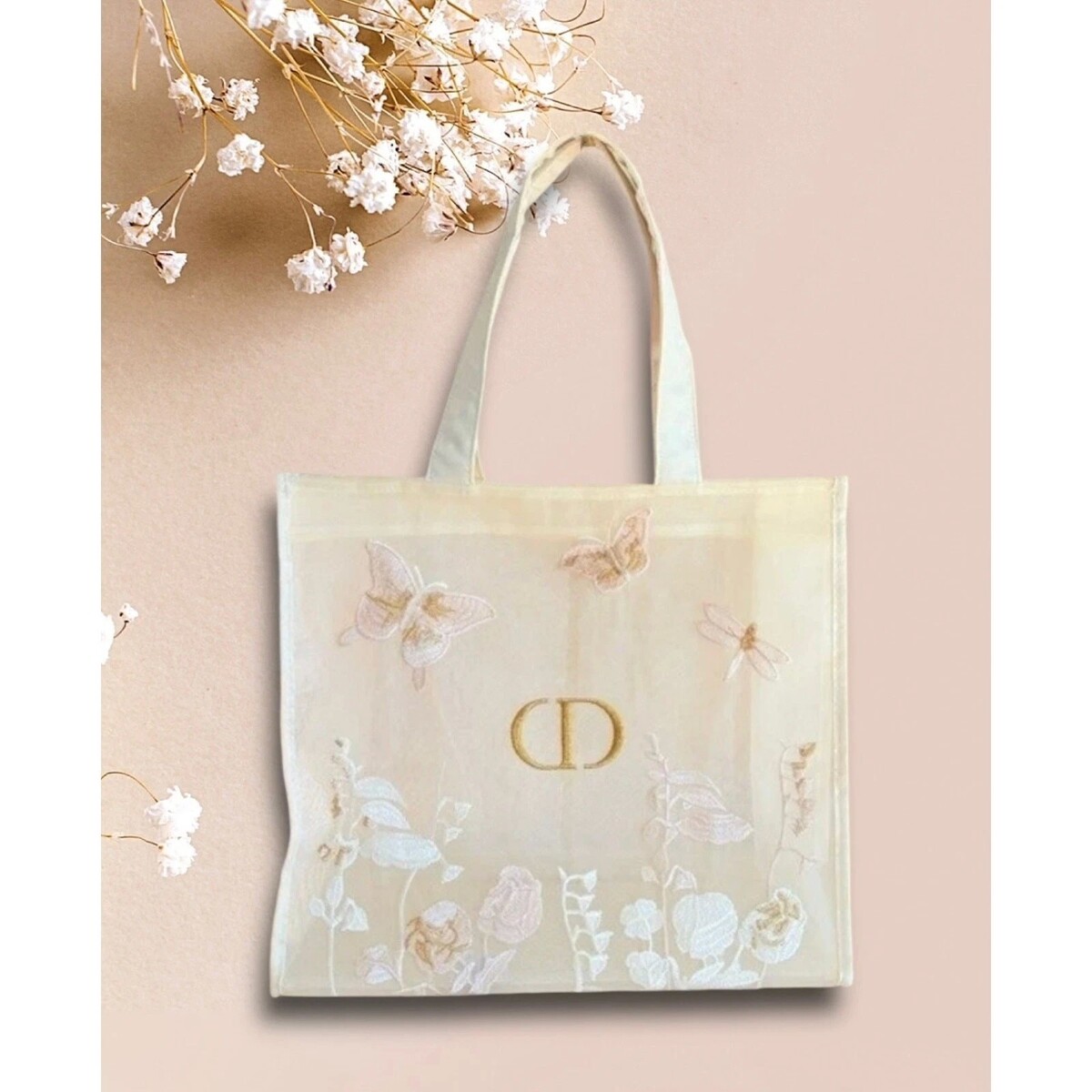 AUTENTIC Christian Dior Beauty Butterfly VIP GWP Mesh Large Tote Bag & Pouch