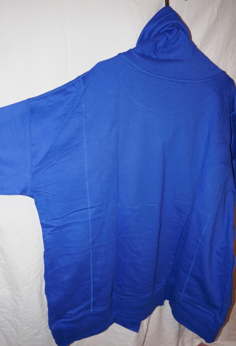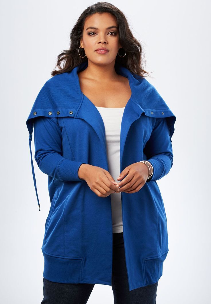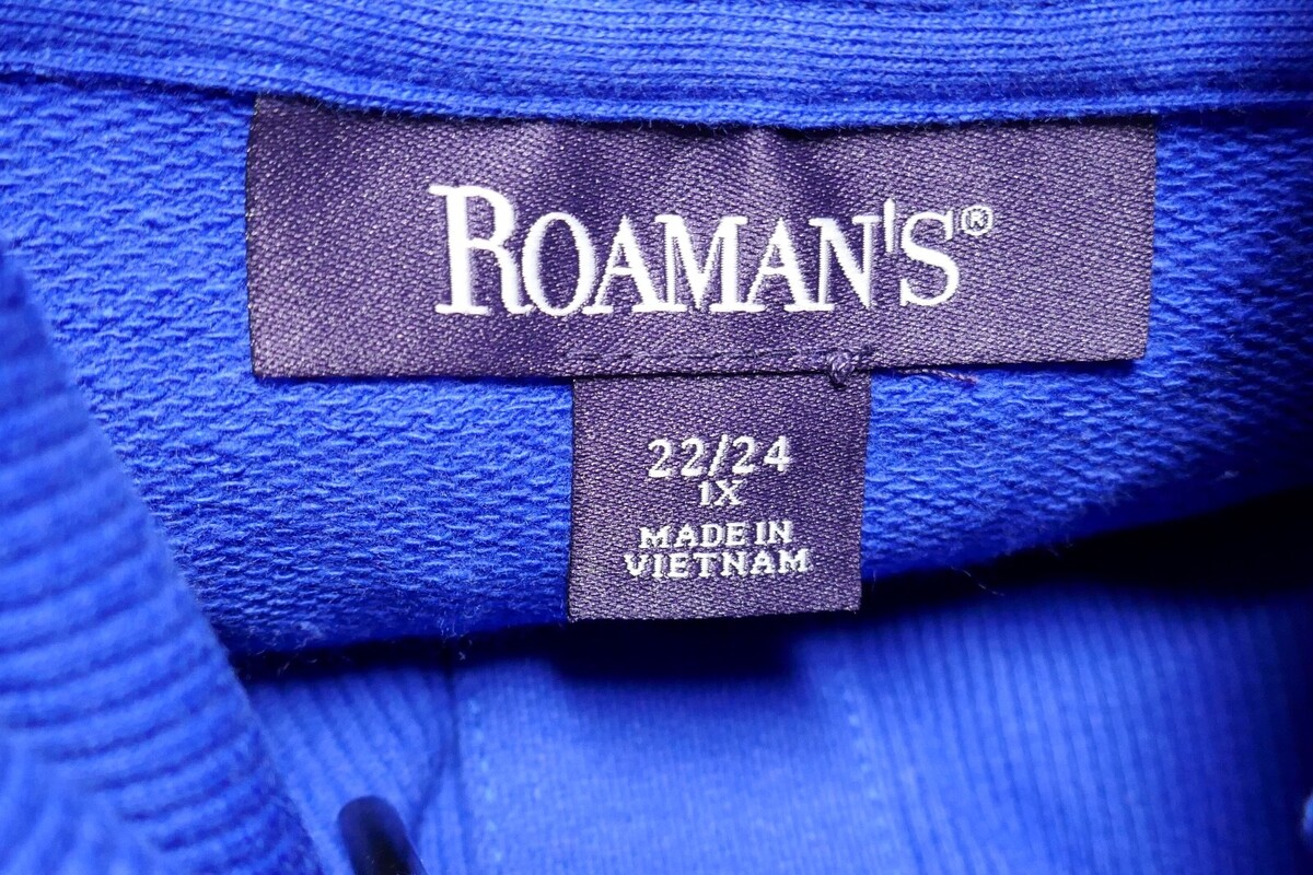 Up for sale is a Roaman's Snap-Collar French Terry Jacket. The blue was removed from the package for photos. The collar measures approx. 14" and 32" from pit to pit and 34" long. This has a Flyaway opening, drawstrings at collar and Side pockets.