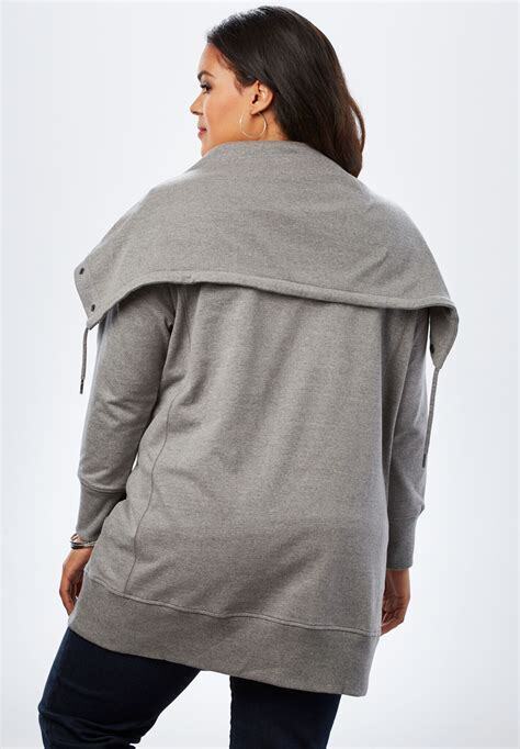 Roaman's Snap-Collar French Terry Jacket Sweatshirt Tunic 1X 22/24