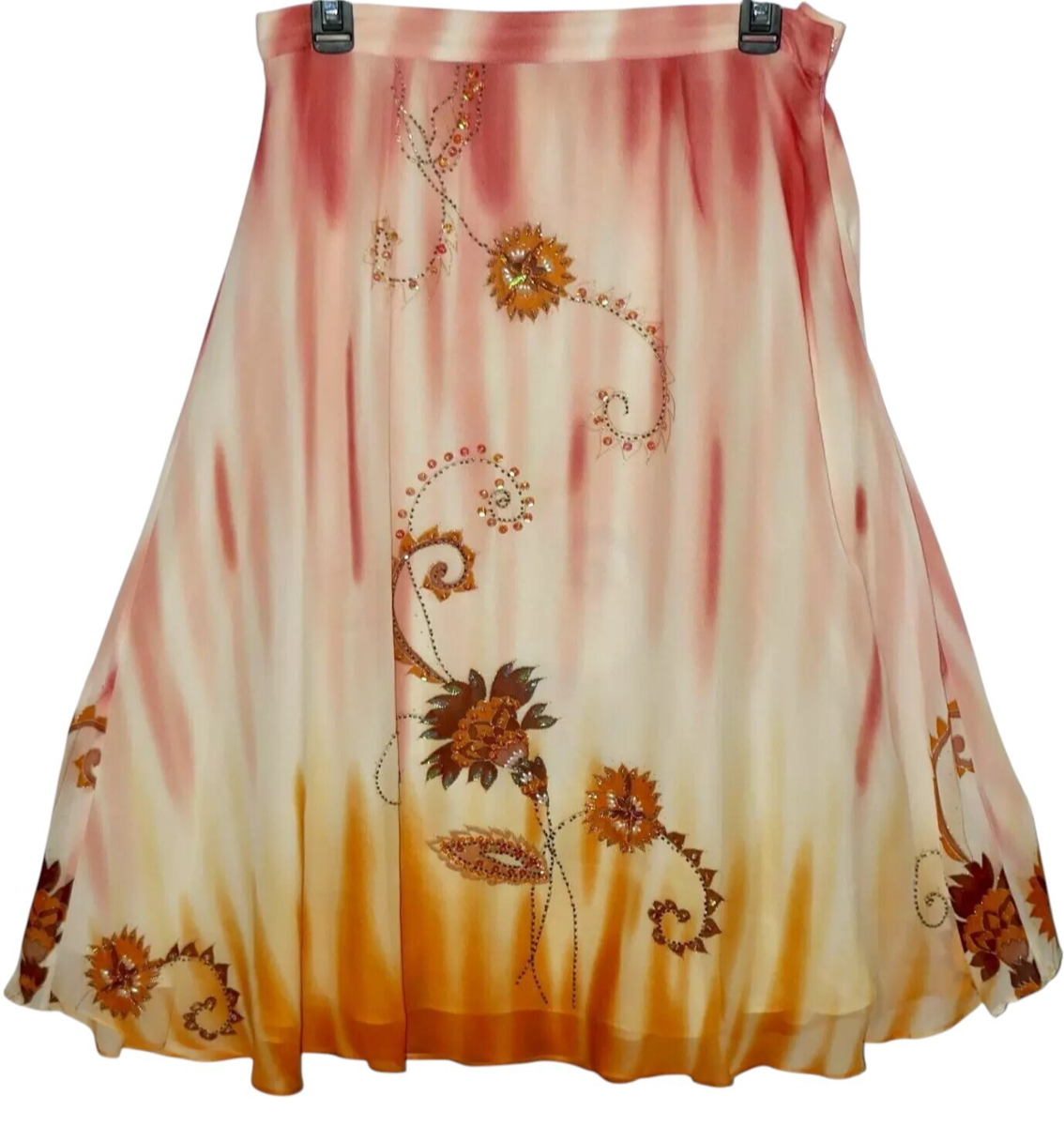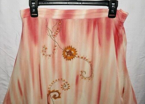 Lapis 100% Silk Tie Dye Floral Sequin Skirt Size Medium