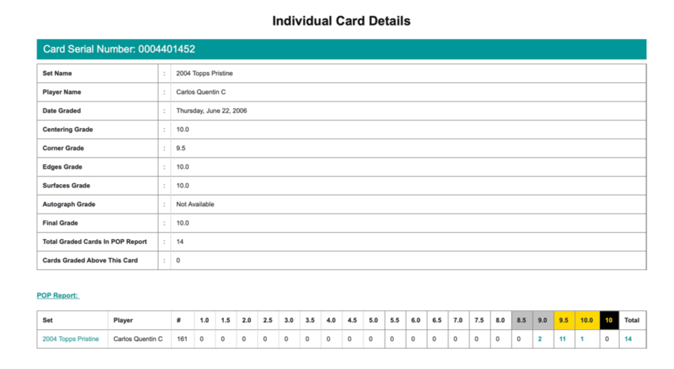 2004 Topps Pristine #161 Carlos Quentin C Rookie Beckett 10 PRISTINE
