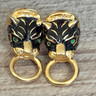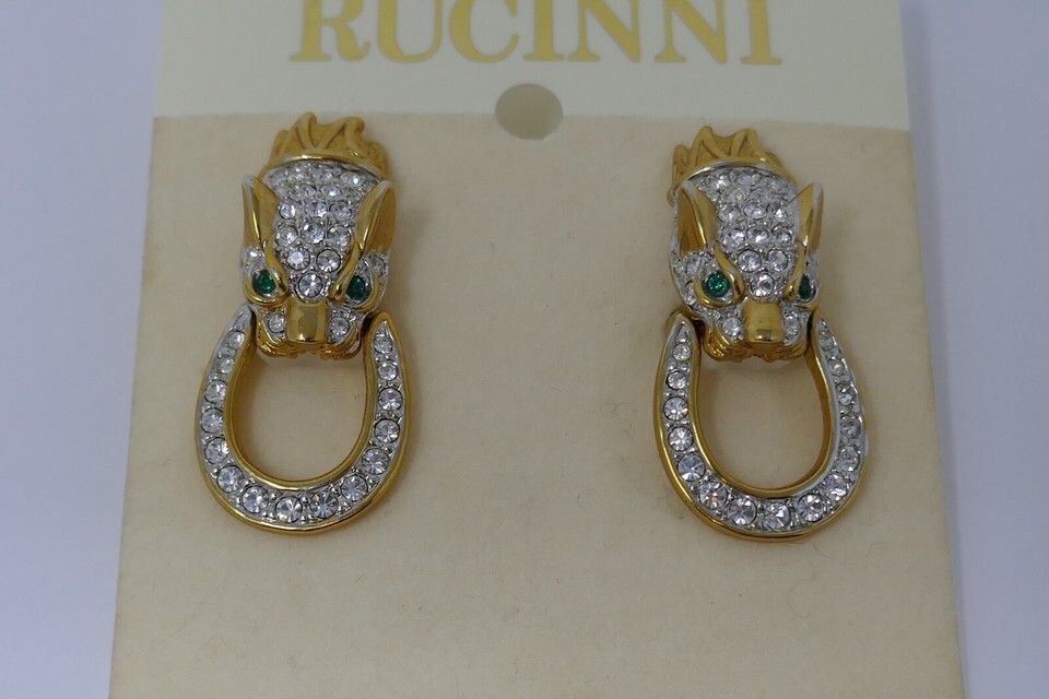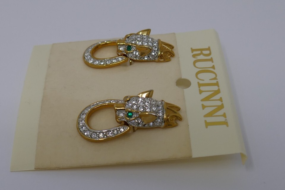 Rucinni Gold Tone Crystal Rhinestones Cat Jaguar Panther Puma Dangle Earrings