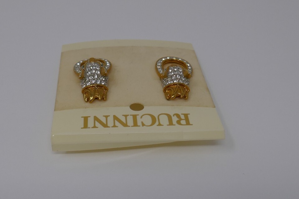 Up for sale is a pair of beautiful Rucinni Gold Tone Crystal Rhinestones Earrings.