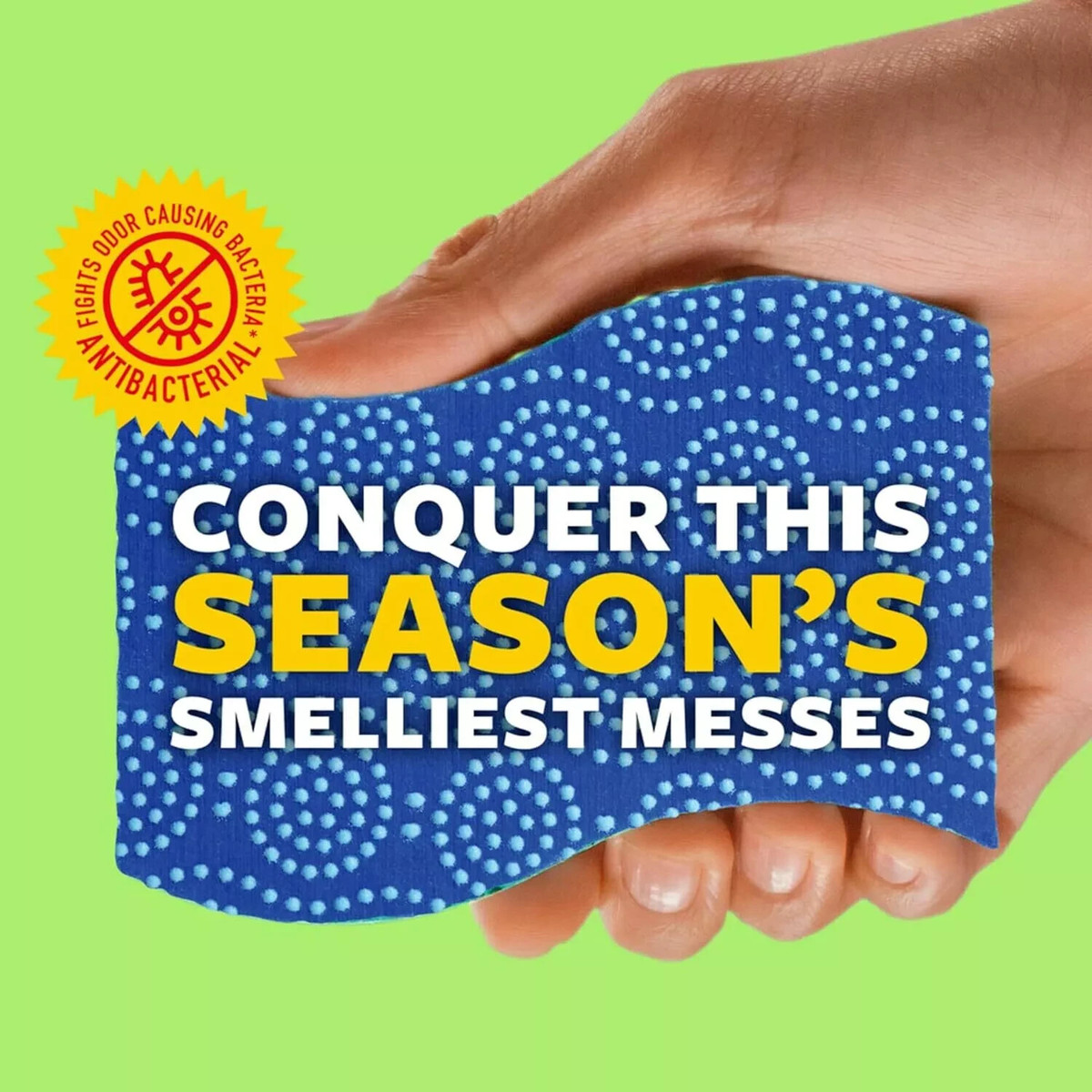 ANTIBACTERIAL FIGHTS ODOR-CAUSING BACTERIA: Each non-scratch sponge contains an agent that protects the product from bacterial odors.