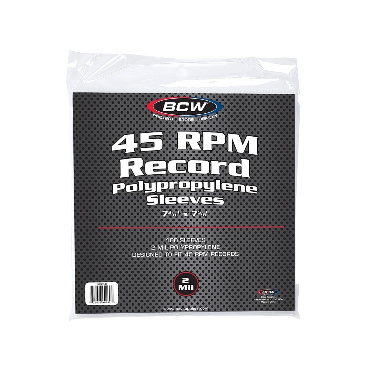 The BCW 45 record sleeves are an acid free, archival quality product made of crystal-clear polypropylene. Designed for use with singles in the cardboard sleeve, these will help protect your collectible 7-inch records. Use with BCW 45 RPM Record Topload Holders for an extra layer of protection.