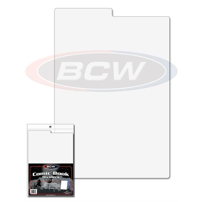 The BCW Comic Dividers are made from a full 30 point white high density Polyethylene Plastic (archival quality), with write-on index tab, and are precision cut to size.