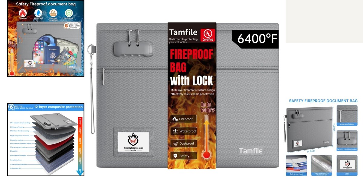 Fireproof Document Bag with Lock 6400℉ and 50 similar items