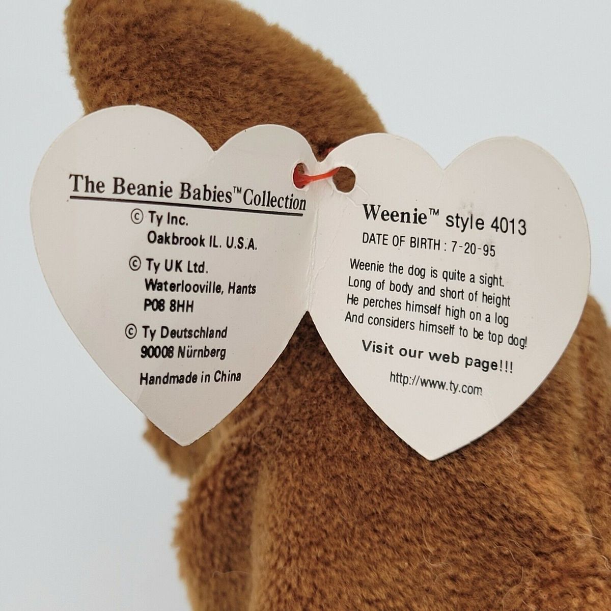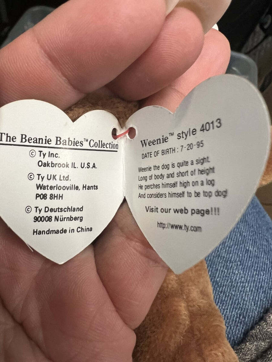 RARE Ty Beanie Baby Weenie the Dachshund w/Errors Waterlooville 4013 1995 PVC