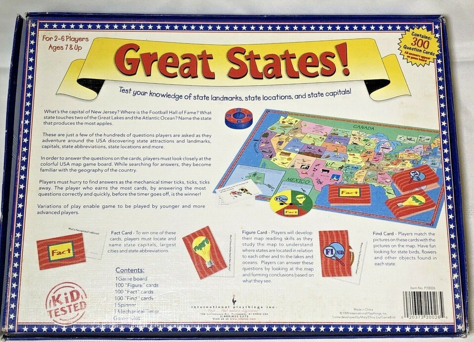 With International Playthings' Great States board game, you'll have a blast while developing your knowledge of the United States. Whether you're a geography enthusiast or just looking for a fun game to play with friends and family, Great States is the perfect choice. Get ready to embark on an exciting journey across the USA!