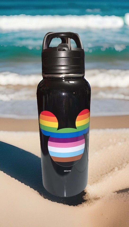 Get your hands on this amazing Disney Pride Collection water bottle featuring Mickey Mouse with rainbow ears. This stainless steel bottle has a capacity of 1000 ml and comes with a straw for easy consumption. Perfect for all occasions, whether you're hitting the gym or going on a road trip, this water bottle is sure to keep your drink cold and refreshing.