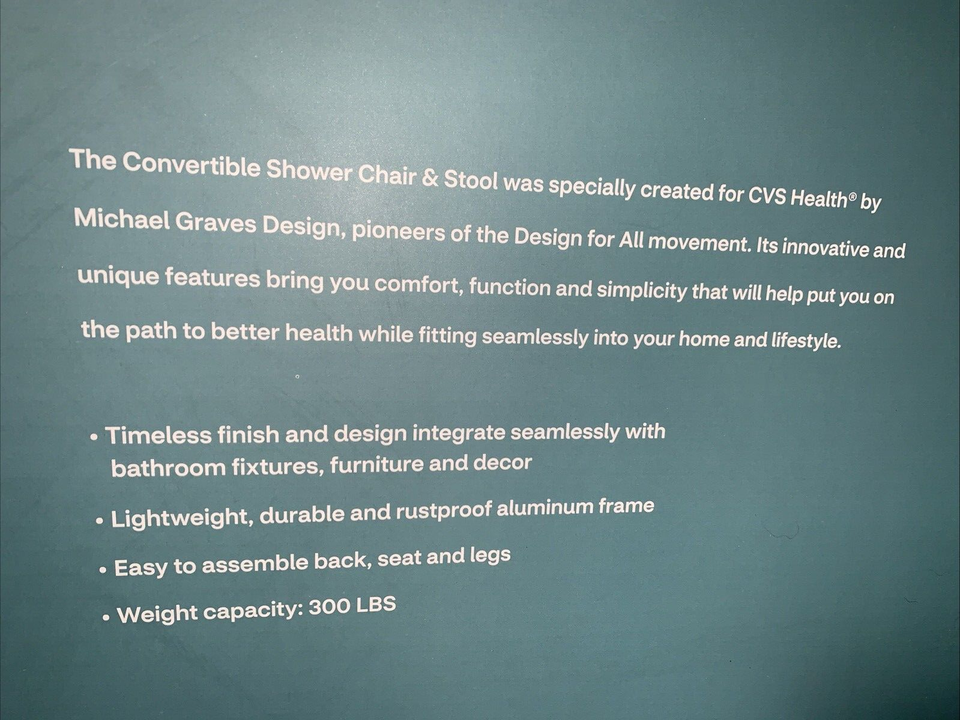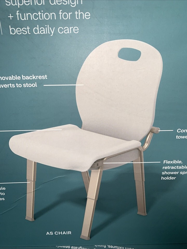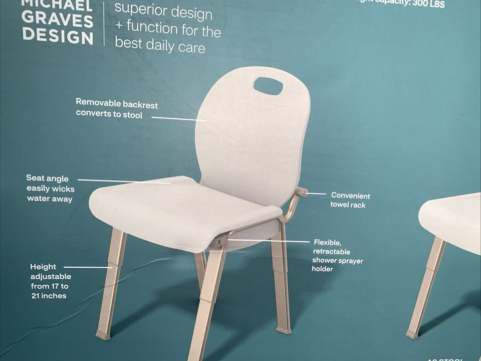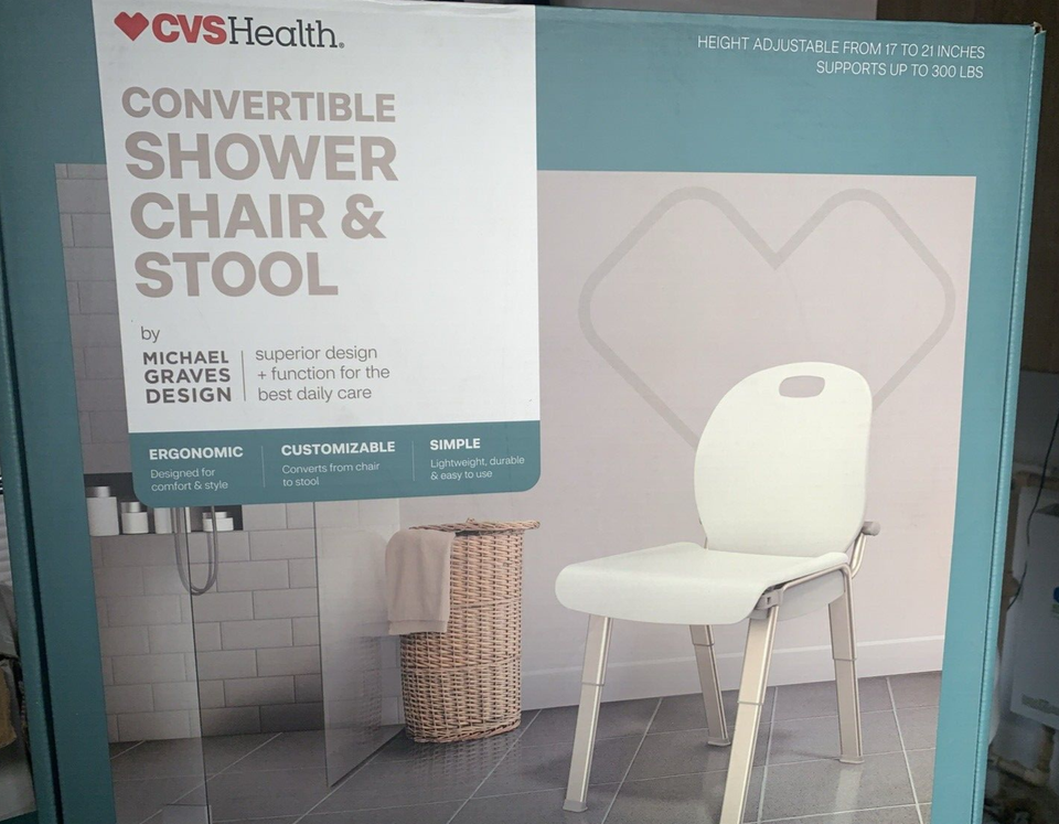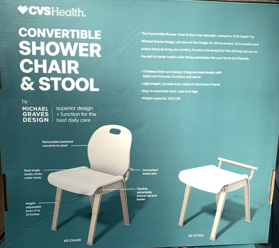 CVS health convertible shower chair and stool designed by Michael Graves. Chair and install 300 pound capacity.