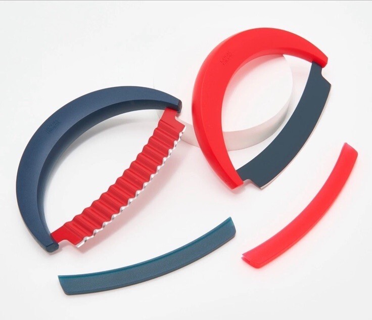 Kuhn Rikon 2-Pc Crinkle Mezzaluna Knife Set K50213 NAVY/RED