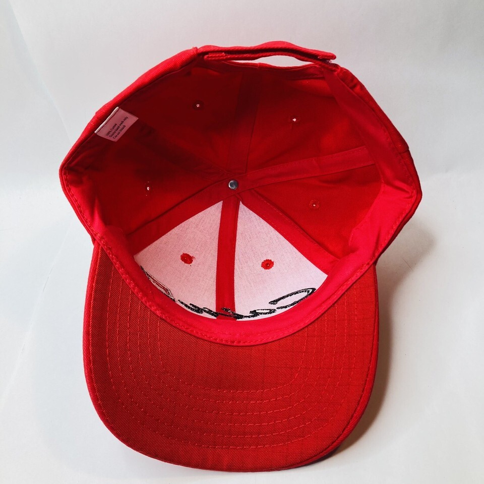 Awesome bright red adjustable (hook and eye fastener) cap with the Cain F Cigar Company embroidered logo. 100% cotton.