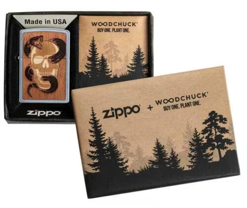 Woodchuck Skull & Snake Metal And Wood Zippo and similar items