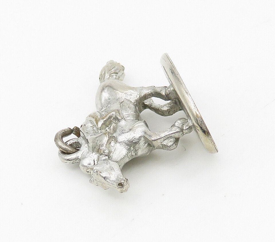 925 Sterling Silver Vintage Shiny Horse Jockey Statue Drop Pendant PT12729