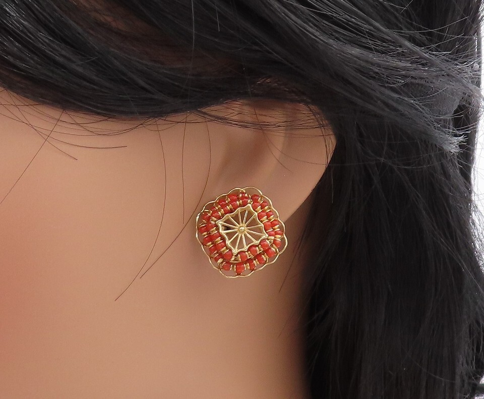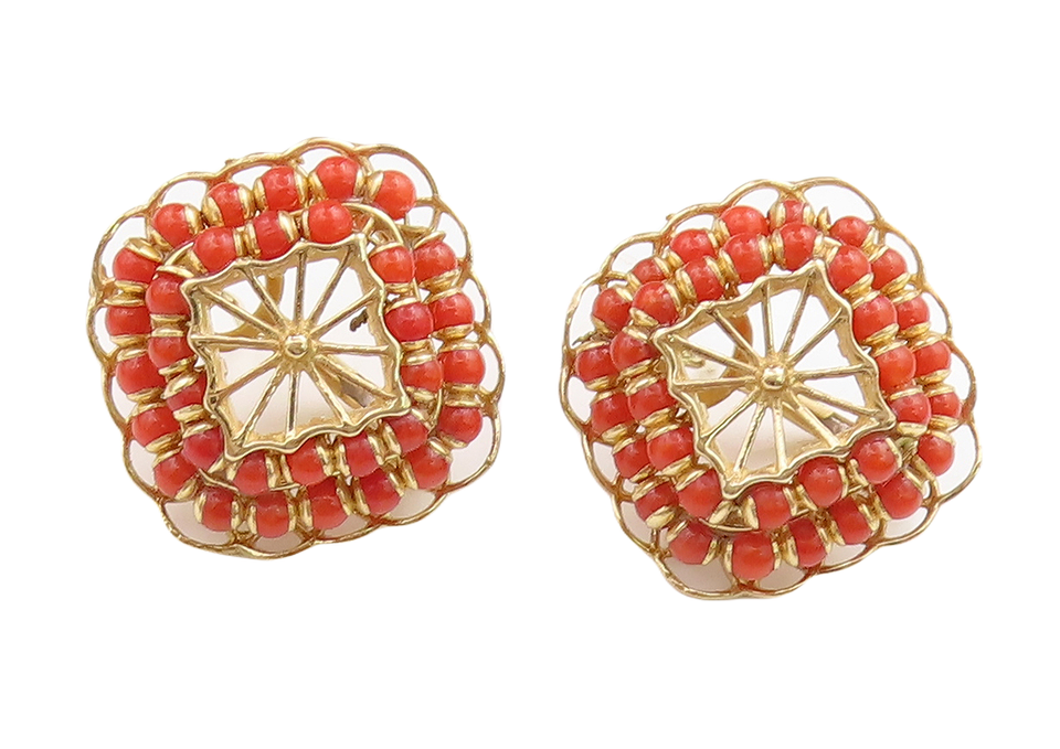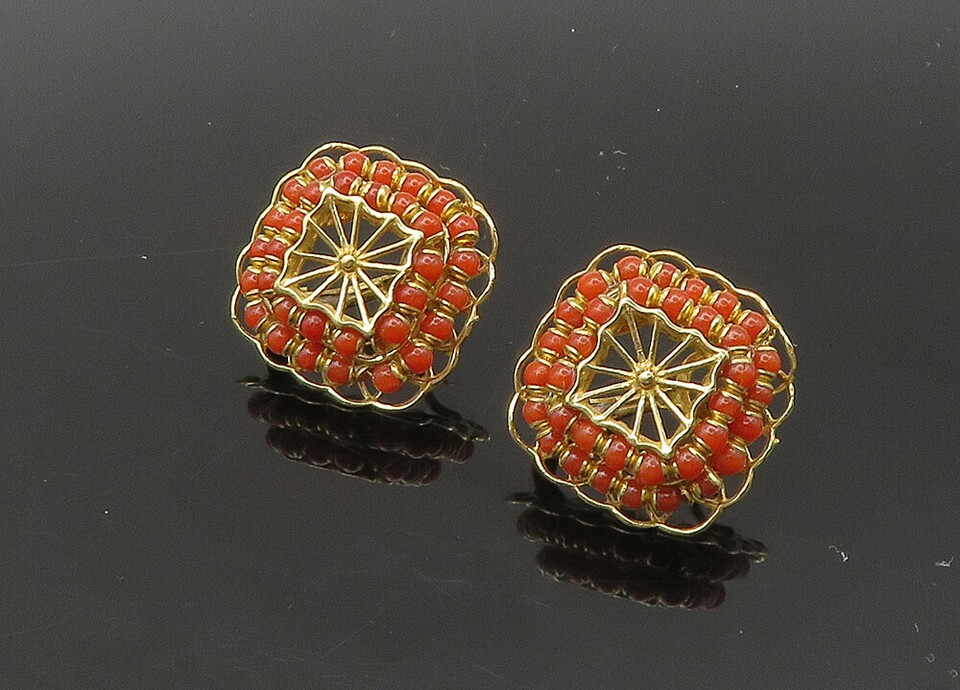 Authenticity Guarantee 18K GOLD Vintage Antique Coral Floral Motif Shiny Do...