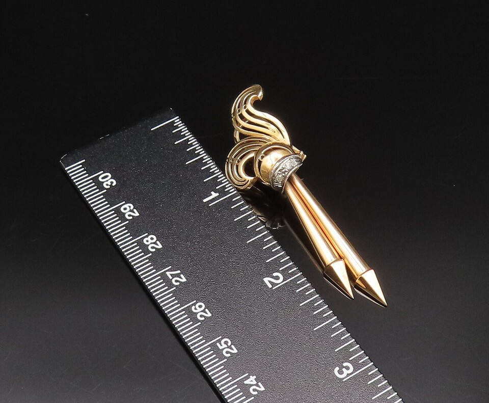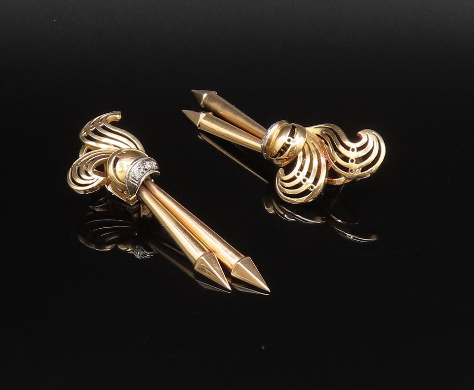 Authenticity Guarantee 18K GOLD Vintage Two Tone Open Swirl & Pointed Bar R...