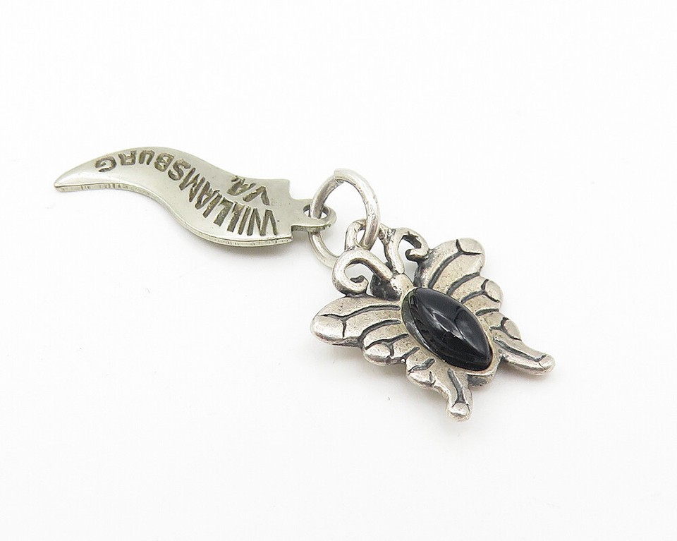 925 Silver Vintage Black Onyx Butterfly Williamsburg Virginia Pendant PT8703