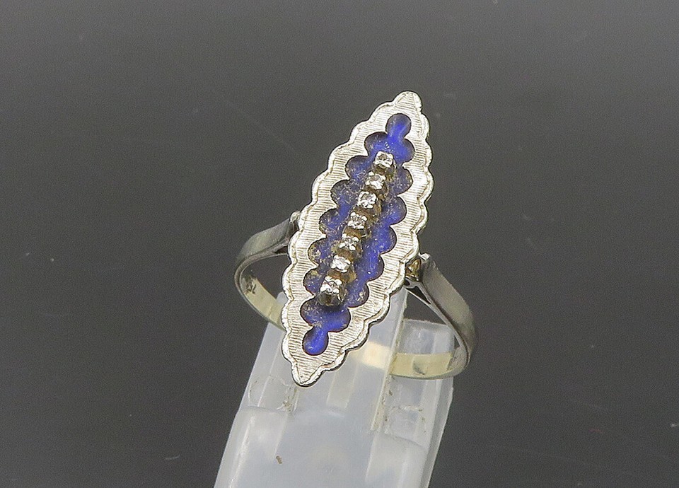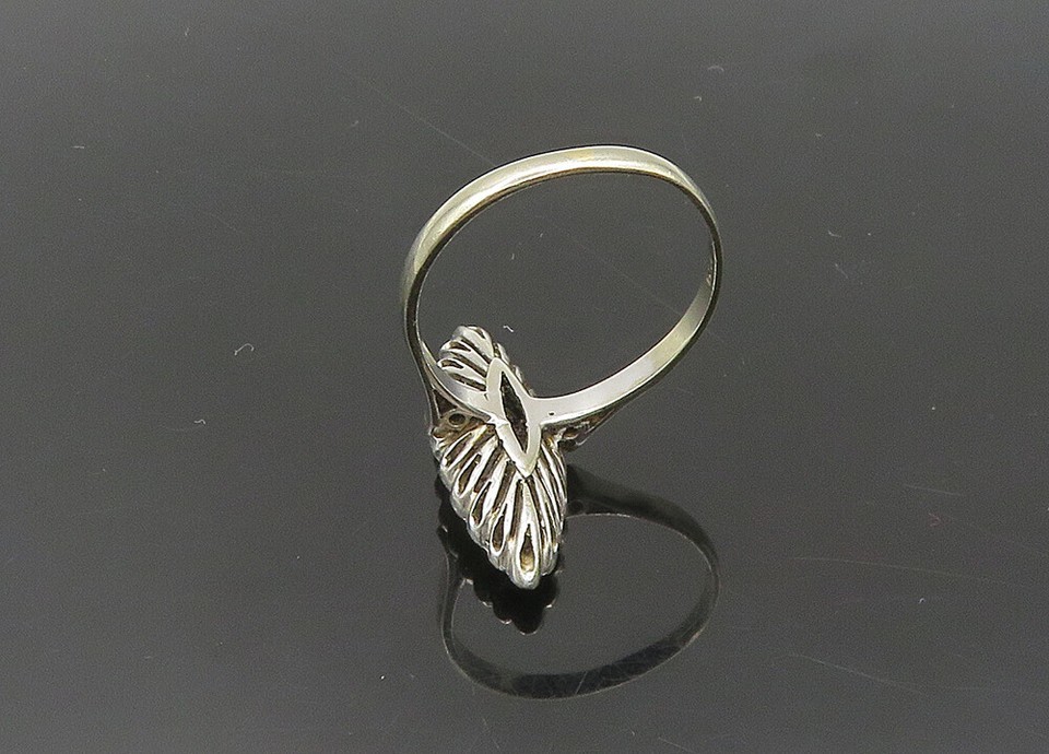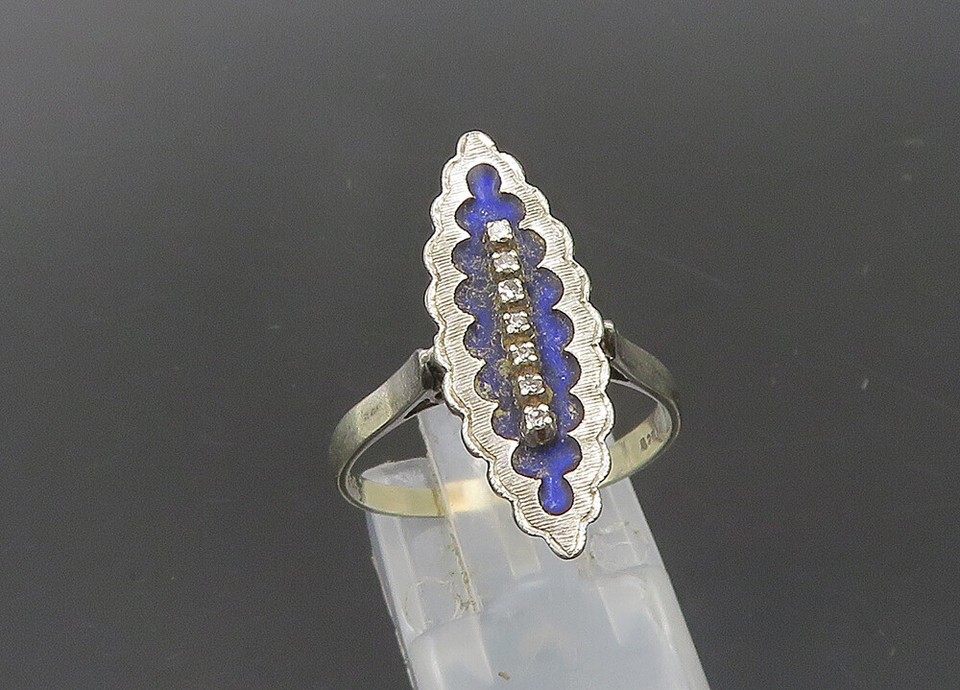 18K GOLD Vintage Genuine Diamonds Pointed Oval Solid Band Ring Sz 8 GR002
