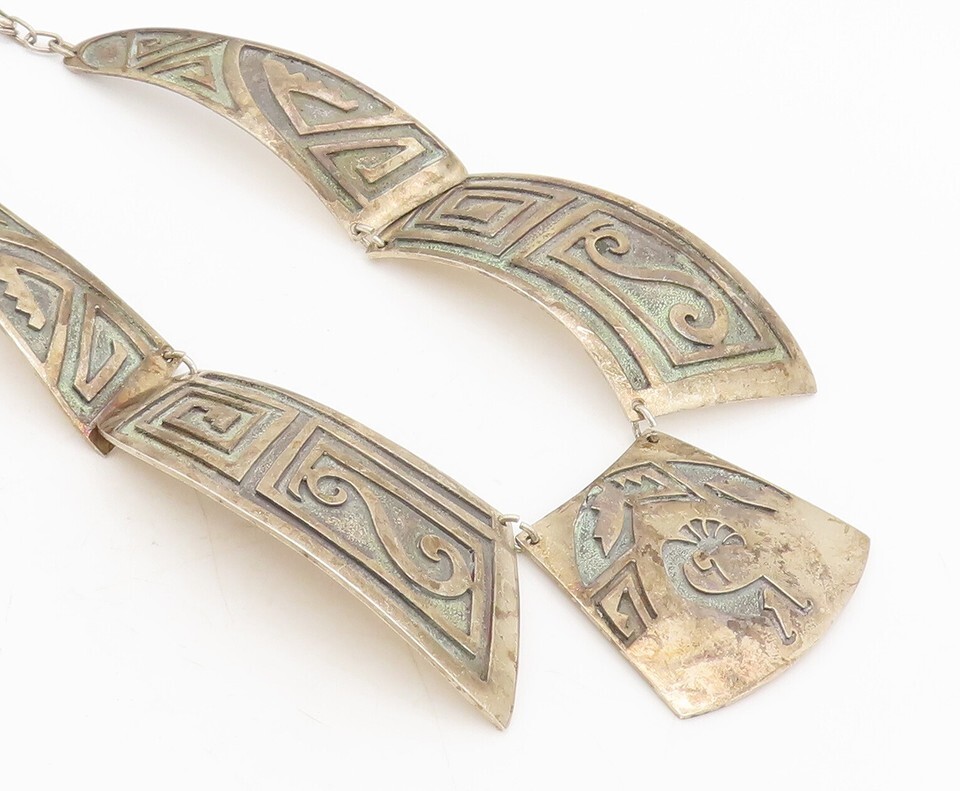 NAVAJO 925 Sterling Silver Vintage Southwestern Etched Solid Necklace NE4202