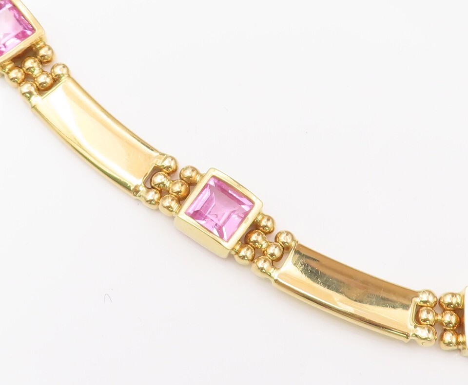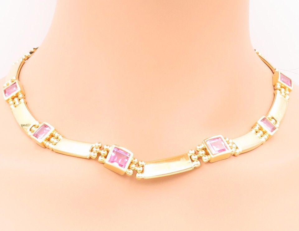 Authenticity Guarantee 18K GOLD Vintage Necklace RANZAN Pink Gemstone Carved...