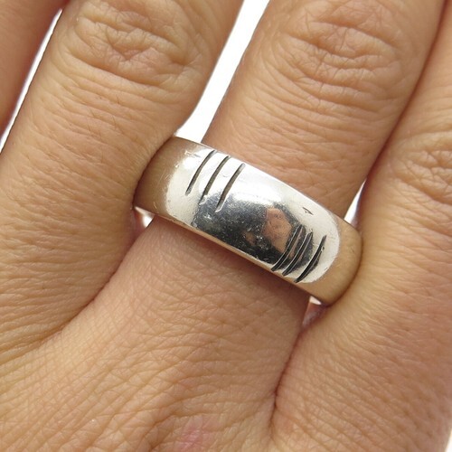 925 Sterling Silver Vintage Shiny Two Tone Fluted Dome Band Ring Sz 11 RG7439