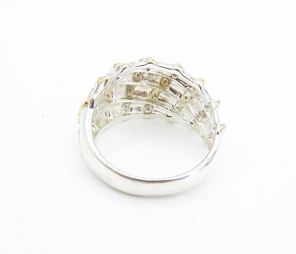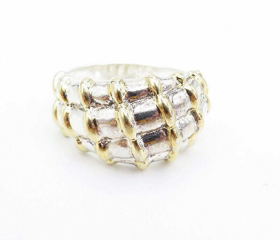 925 Sterling Silver Vintage Shiny Two Tone Fluted Dome Band Ring Sz 11 RG7442
