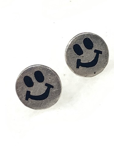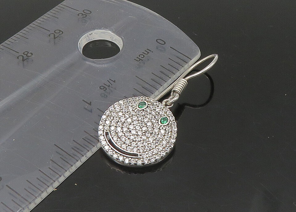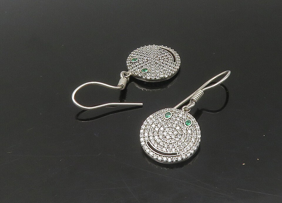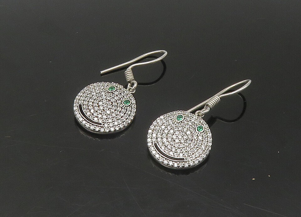 925 Sterling Silver Vintage Shiny Topaz Smiley Face Dangle Earrings EG10894