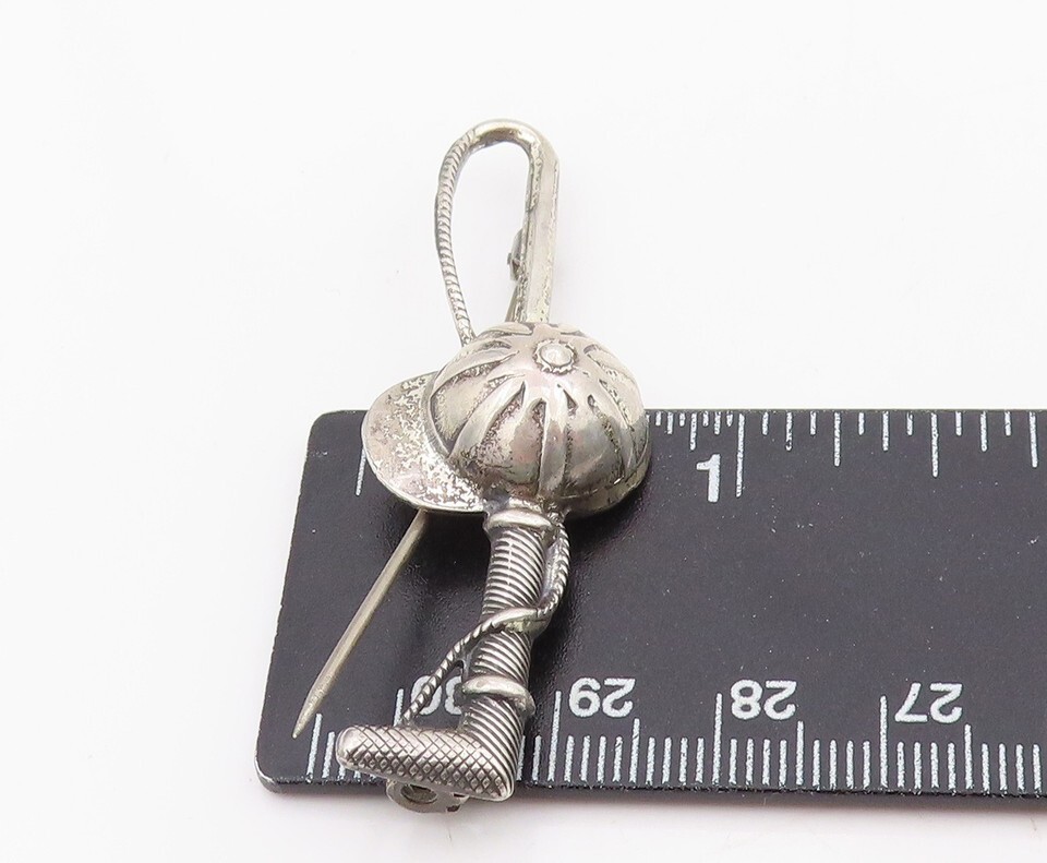 925 Sterling Silver Vintage Brooch Horse Riding Crop Jockey Cap Pin BP12065