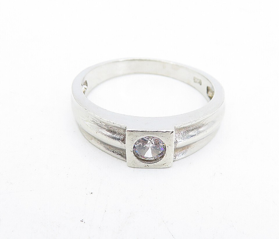 925 Sterling Silver Vintage Cubic Zirconia Fluted Band Ring Sz 9.5 RG5018