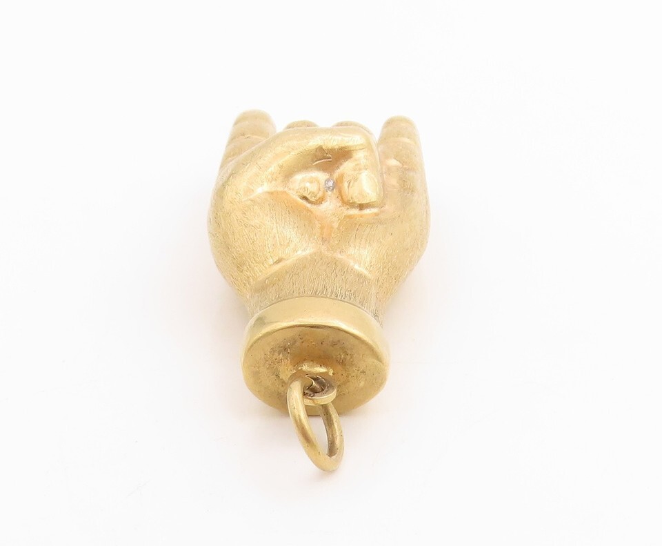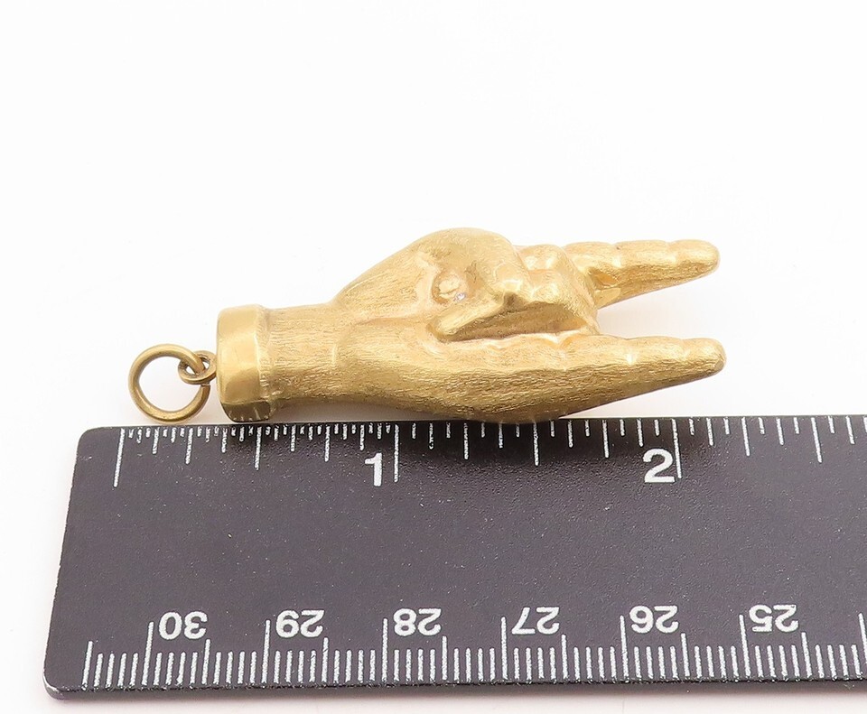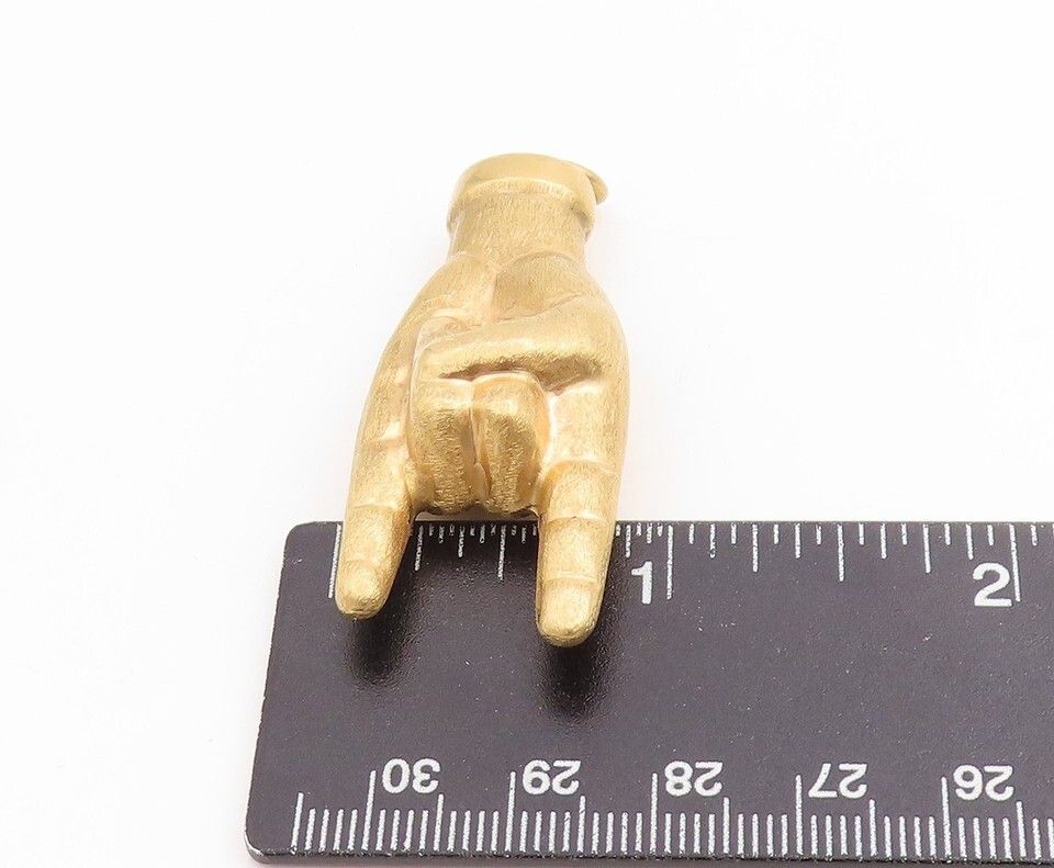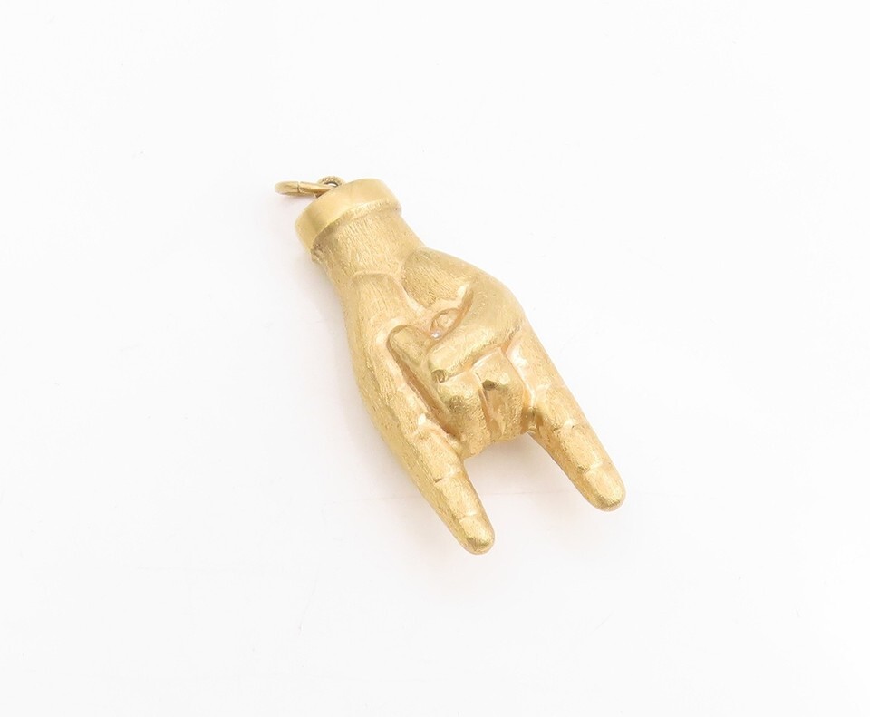 Authenticity Guarantee 18K GOLD Vintage Pendant Solid Rock and Roll Hand Ges...