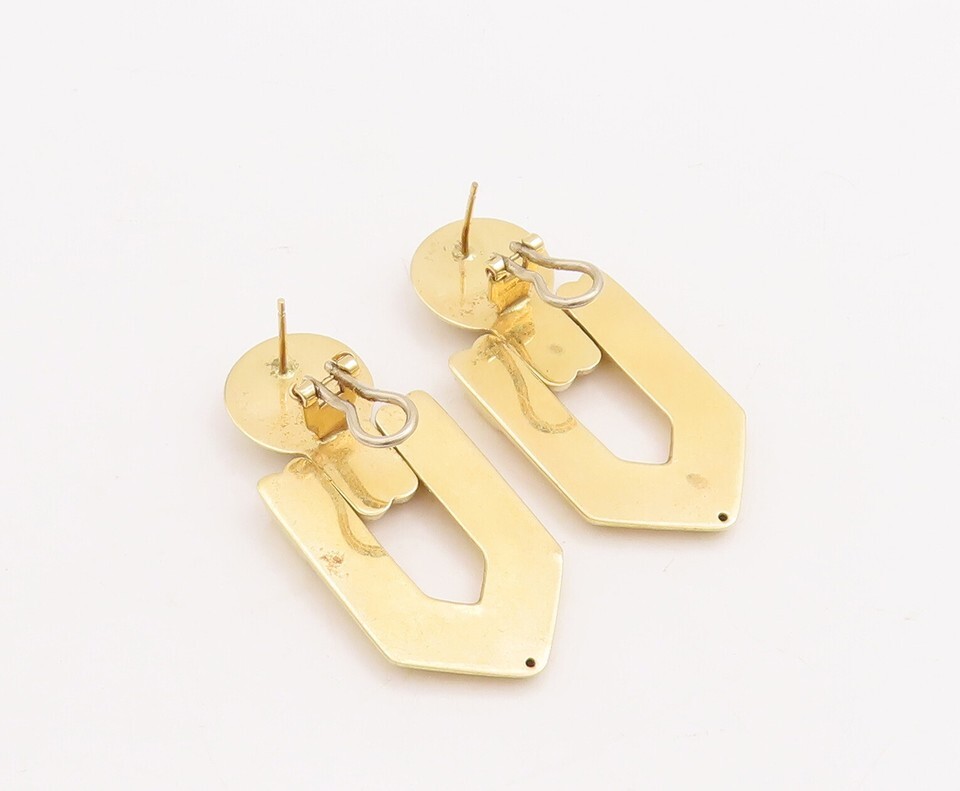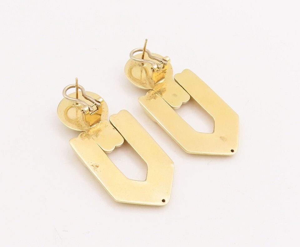 Authenticity Guarantee 18K GOLD Vintage Earrings Solid Carved Domed Dangling...