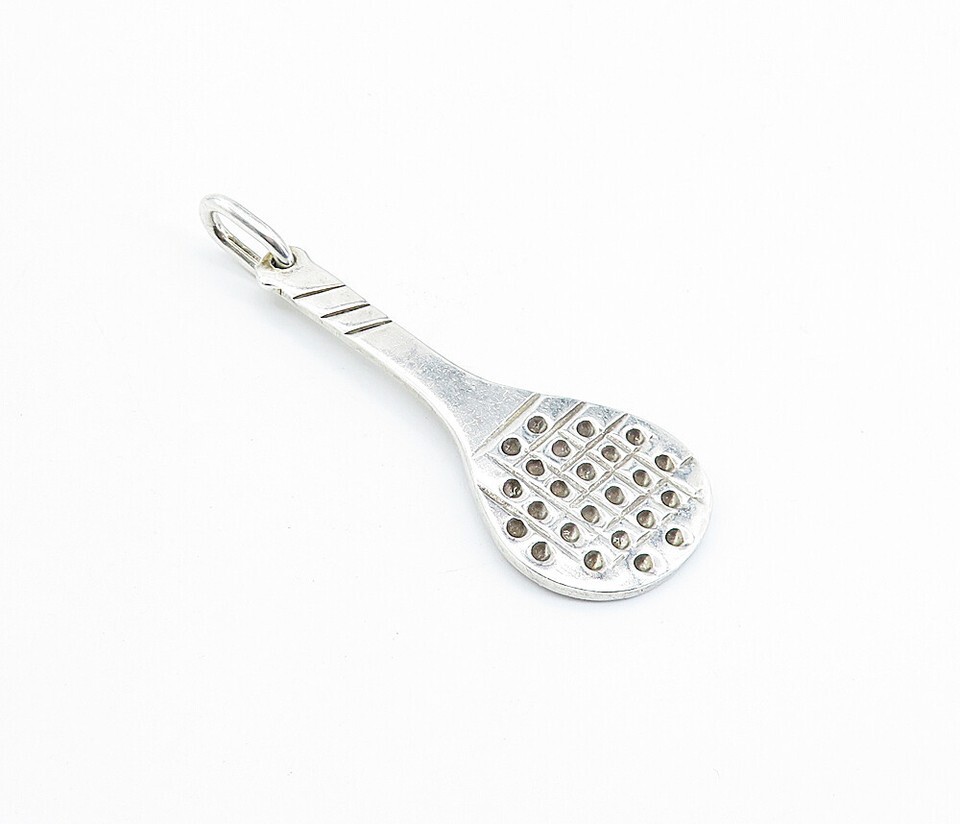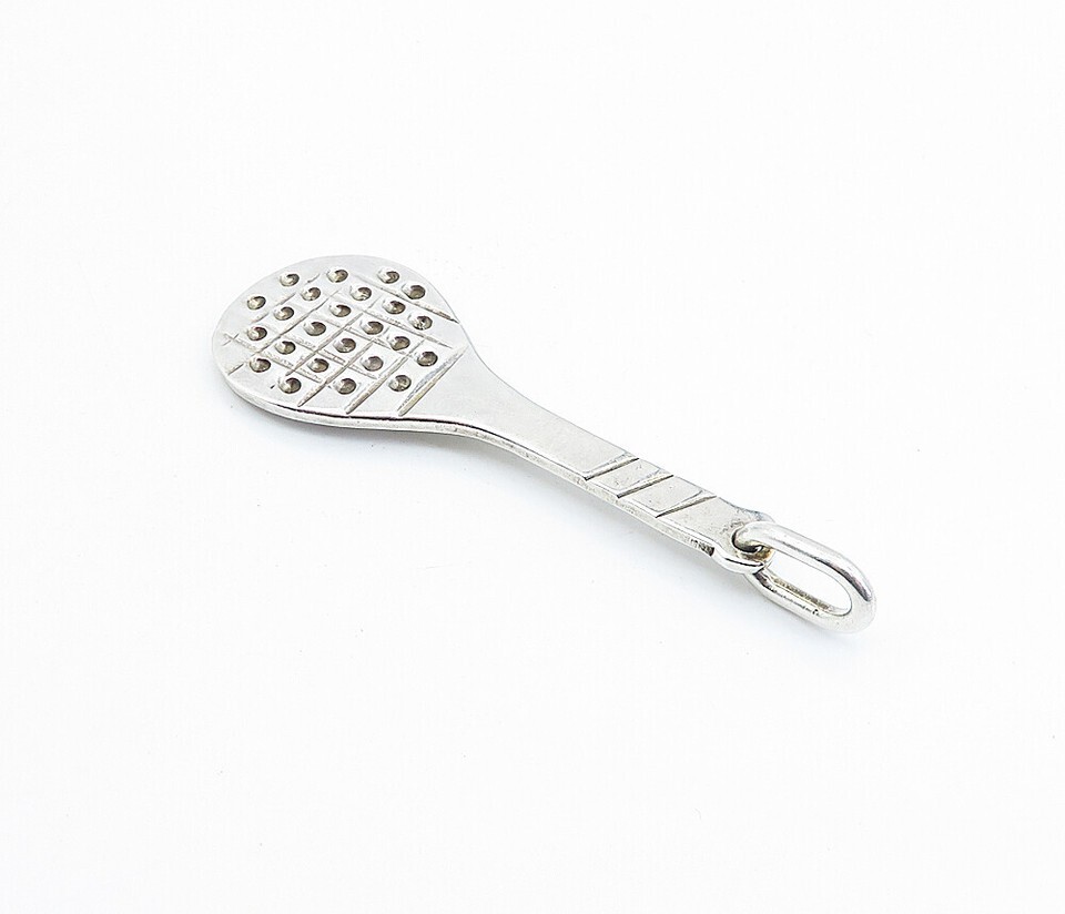 MEXICO 925 Sterling Silver Vintage Shiny Tennis Racket Sports Pendant PT4887