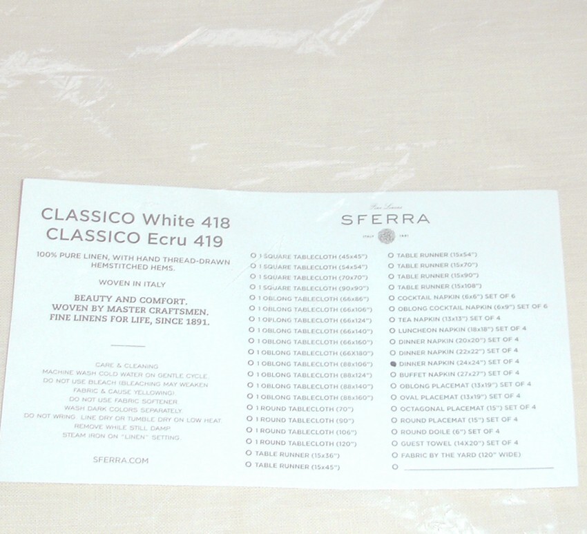 Sferra Classico Ecru Dinner Napkins Italian Linen 24x24" Hemstitched 4 PC. New