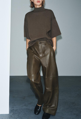 ZARA BNWT 2025. KHAKI LIMITED EDITION STRAIGHT LEATHER TROUSERS PANTS. 5479/247