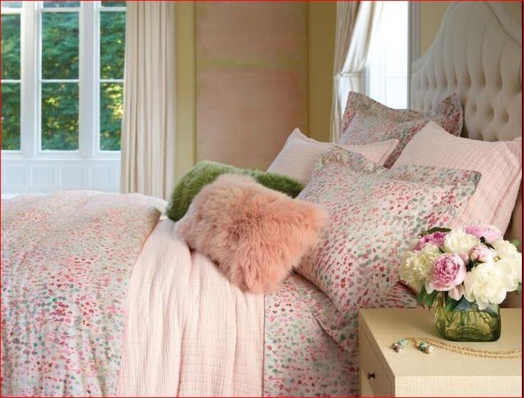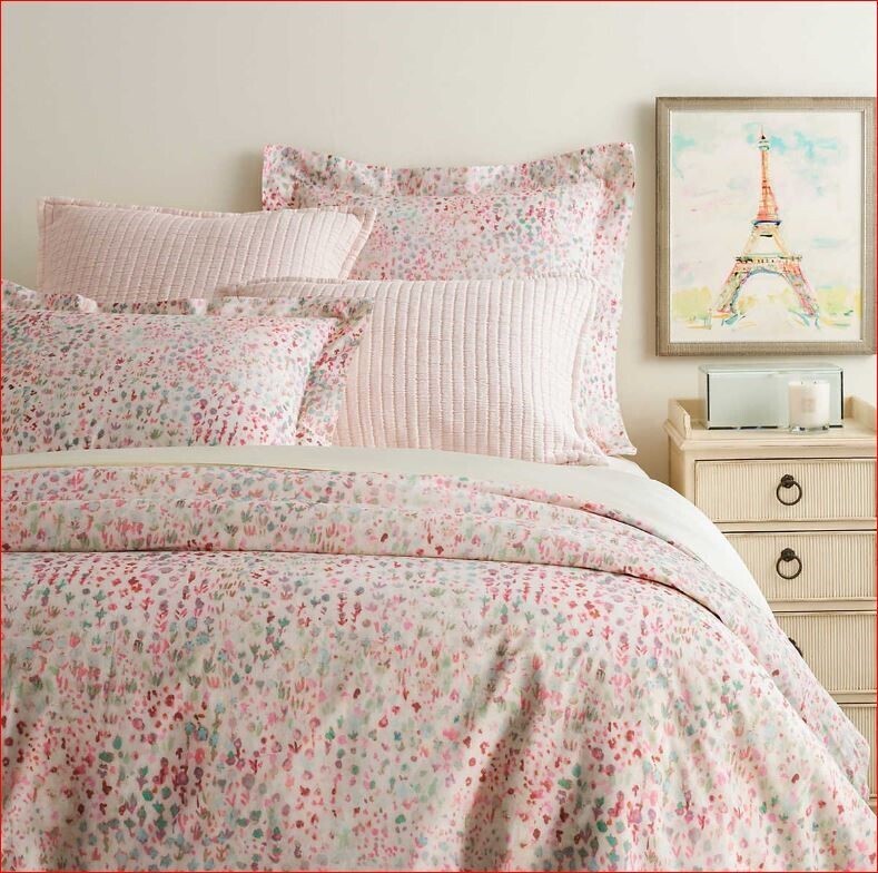 - A soft floral of bright fresh watercolor daubs in plum, fuchsia, azalea, sky, and jade on a light ivory ground (with a hint of pink) has a sweet innocence. Annie and the team fell in love with the original French artwork while in Paris in the spring and built a collection around it.