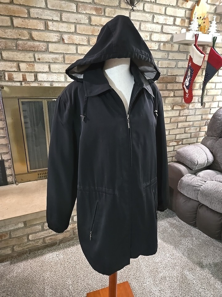 Gallery Systems 3 In 1 All Weather Parka Jacket Womans Sz Medium Black Hooded