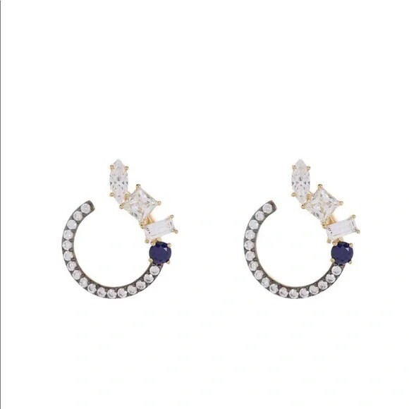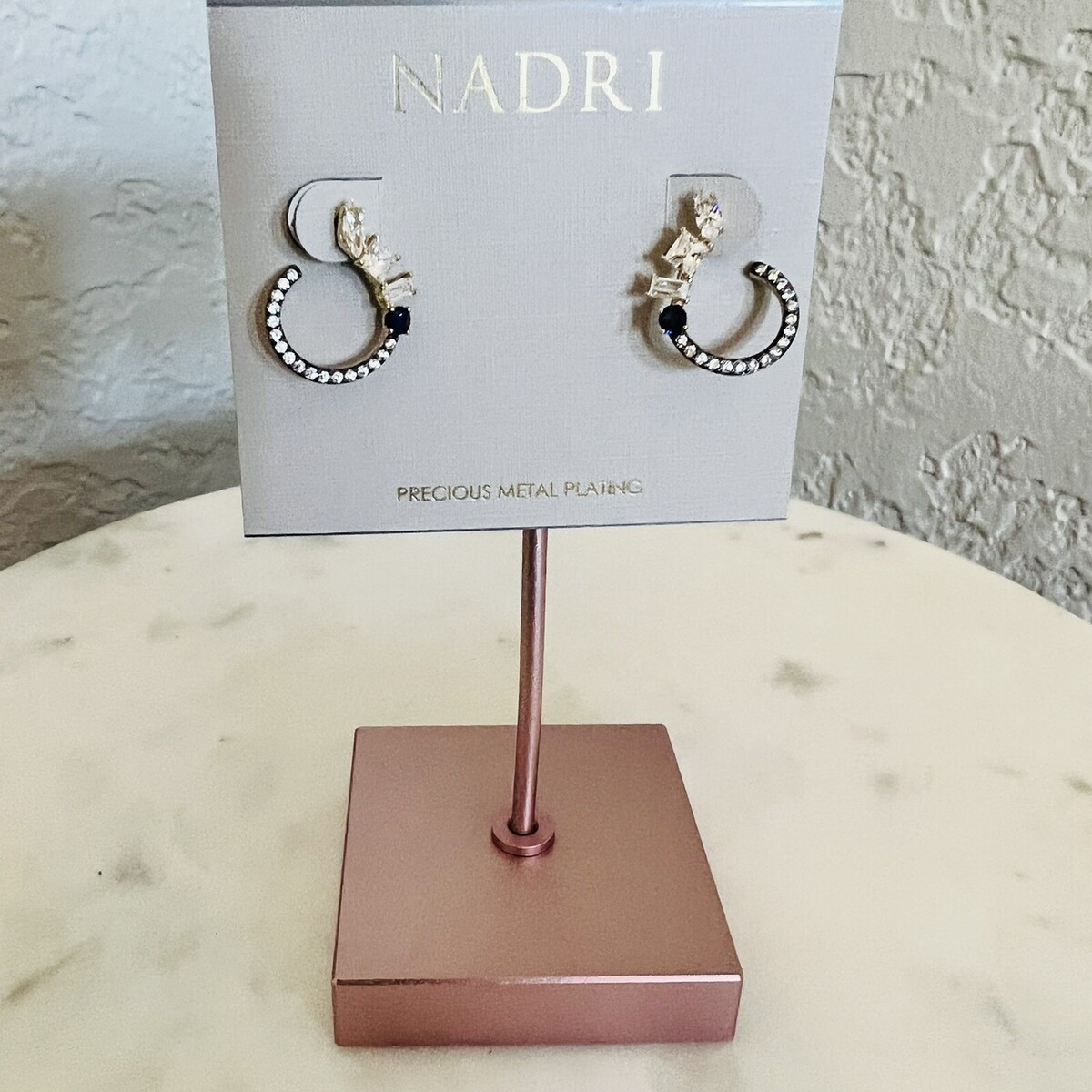 NADRI Encore Mixed Shape CZ Front-Facing Hoop Earrings Color: Gold/Blue New with tags attached in original packaging An elegant design elevates stunning CZ embellished front-facing hoop earrings for contemporary style. ? Post back ? Plated brass, cubic zirconia ? Imported
