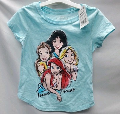Girls Disney Princesses T-Shirt XS 4-5 Light Blue Forever Friends