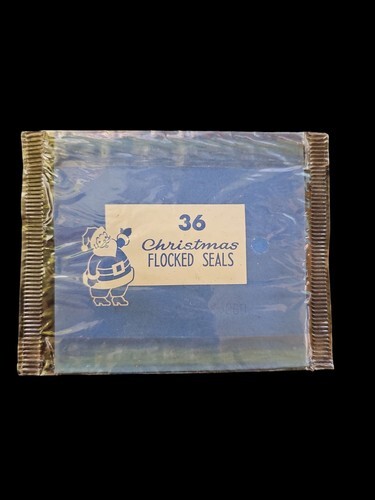 Vintage Flocked Sparkled Poinsettias Die Cut Gummed Christmas Holiday Seals NOS
