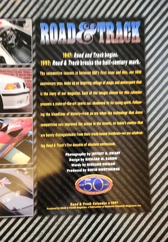 ROAD & TRACK Calendar Vintage 1997 Large Format 22" W x 15" T Wire Bound 50th