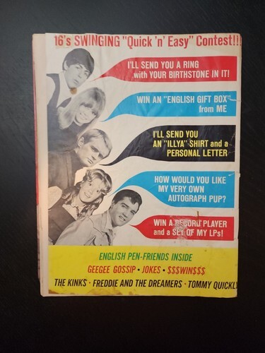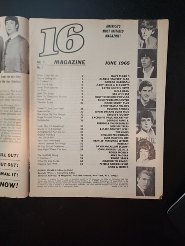 This magazine may have the front and back cover separated--It may have no back cover at all--It may have writing in it--and there may be torn and roached area's along the edges--it was a very prized possession of a teenage girl from the 60's