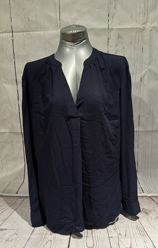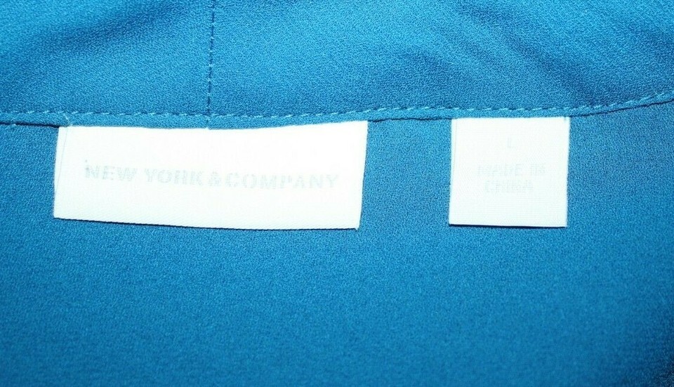 New York & Company Misses LARGE Dark Teal Blue Top Blouse Hi Lo Lace Up Sides