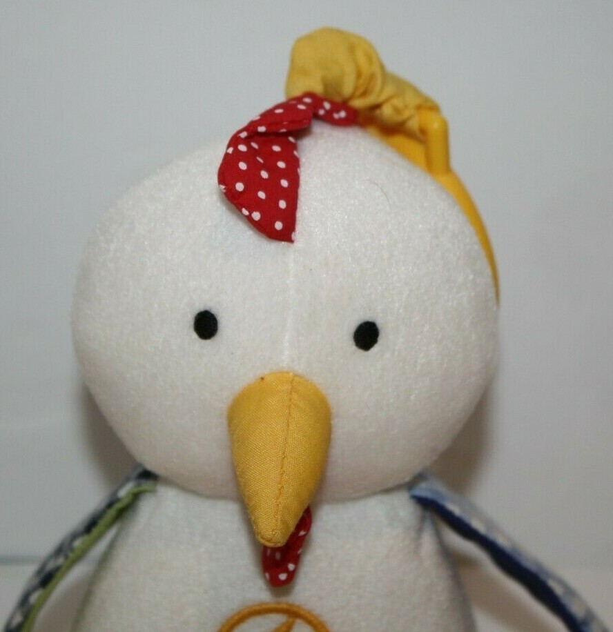Pottery Barn Kids Chicken Fun On The Farm Plush Chick, Approx 11 inch, Baby Rattle Rooster Rings on Feet, Crow Sound, Gingham Crinkle Wings