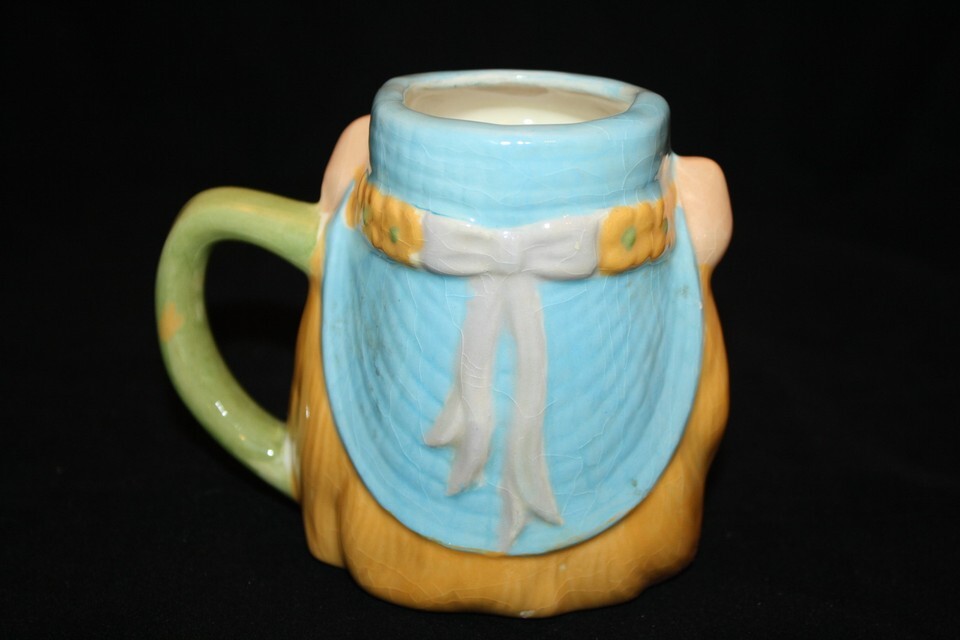 FLAW: Chip on back bottom of mug, Crazing Inner and Outer, Has some pin type holes in bottom of glaze