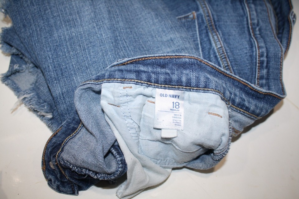Old Navy SweetHeart Womens Plus 18 Shorts Blue Jean Denim Fringe 5 Pocket Zip